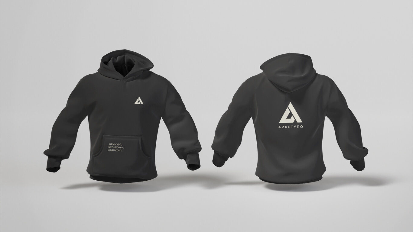 Στο Αρχέτυπο σχεδιάζουμε και εκτυπώνουμε εταιρικά T-shirts και φούτερ με κουκούλα, προσαρμοσμένα στο ύφος και το branding της επιχείρησής σας.